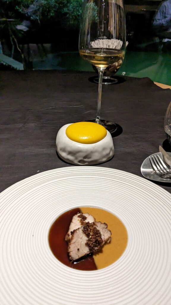 Going to a Michelin star restaurant was part of the draw of staying at the Penha Longa, one we justified by thinking, we aren’t paying for the stay anyway, so why not? We chose LAB by Sergei Arola. Originally, I figured we’d just do the set menu and not pay for the wine pairing, but Chris happened to win a $500 prize through this Lions Club drawing my dad enters us in every year, and we decided “fuck it.” With the wine pairing, the meal was going to be something like 450 euro. I made my peace with that, even though it is OBJECTIVELY INSANE to my mind.