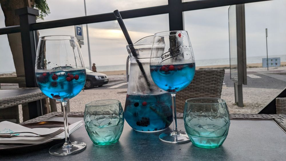 Our final meal in Portugal was at Pangea by the Sea in Obidos, which was amazing! In addition to this blue sangria, we had amazing calamari — and this is coming from someone who is not a fan of that at all.